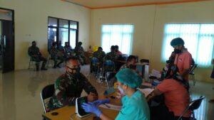 Disampaikannya, jumlah anggota yang divaksin pada hari ini gabungan dari 60 orang personel Kodim 1017/Lmd dan anggota Koramil 01/ Bulik, Koramil 02/Lamandau dan Koramil 03/Delang.