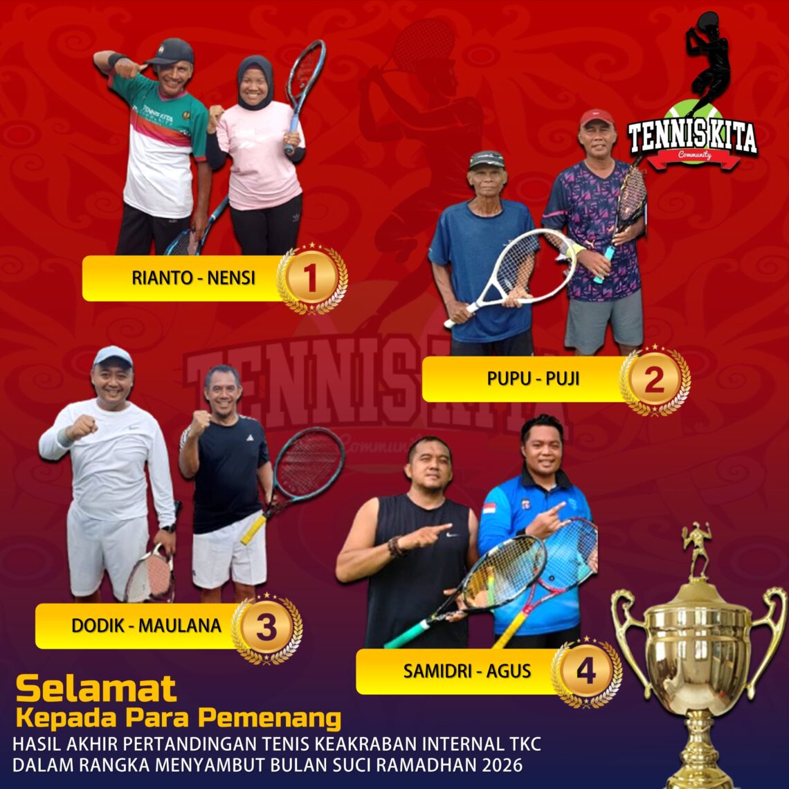 Menyongsong datangnya Bulan Suci Ramadan 1447 H, komunitas tenis bergengsi di Kota Cantik, Tenis Kita Community (TKC), Palangka Raya sukses menggelar laga bertajuk “Pertandingan Tenis Keakraban Internal TKC,”.