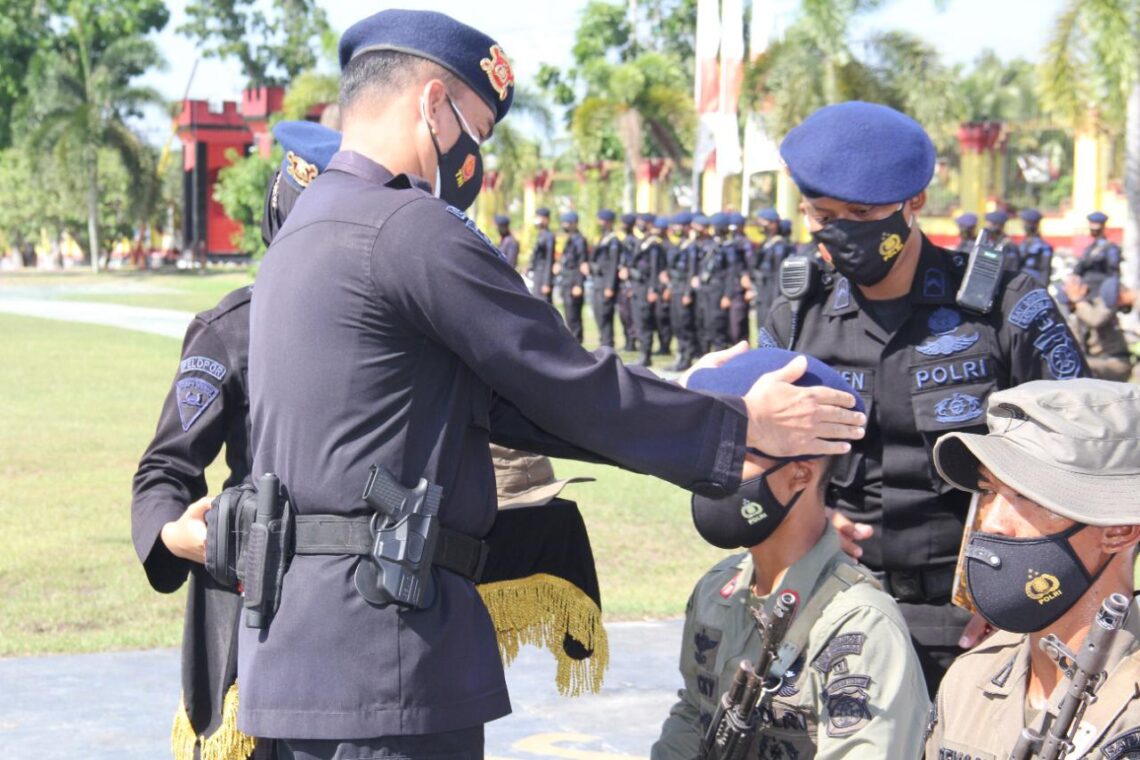 Pelaksanaan upacara penutupan pembinaan dan pembaretan dilaksanakan di Mako Satbrimob Polda Kalteng Jalan Tjilik Riwut KM.32 Kota Palangka Raya. Sabtu (18/09/2021) pagi.