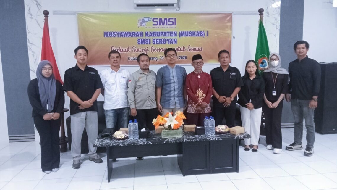 KUALA PEMBUANG, jurnalborneo.co.id – Musyawarah Kabupaten (Muskab) I Serikat Media Siber Indonesia (SMSI) Kabupaten Seruyan digelar di G House, Jumat (23/1). Kegiatan ini mengusung semangat memperkuat sinergi bersama untuk semua, khususnya dalam memajukan peran media siber yang profesional di daerah.