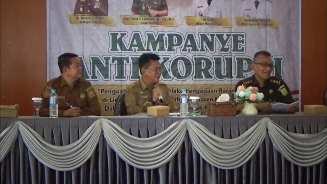 PURUK CAHU, JurnalBorneo.co.id – Aparatur Sipil Negara (ASN) di lingkungan Pemerintah Kabupaten (Pemkab) Murung Raya (Mura) mengikuti kegiatan kampanye anti korupsi yang digelar di Aula Cahai Ondhui Tingang, Gedung B Kantor Bupati Mura, Selasa (12/8/2025).