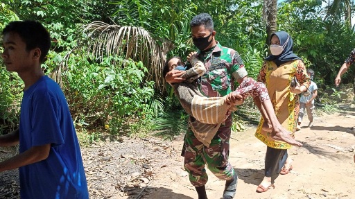 Evakuasi yang di pimpin langsung oleh Ibu Lurah Nanga bulik dan di dampingi Babinsa Koramil-01 Pratu Aver carly dan sejumlah tim medis dari puskesmas Bulik langsung melakukan evakuasi terhadap ibu Minah.