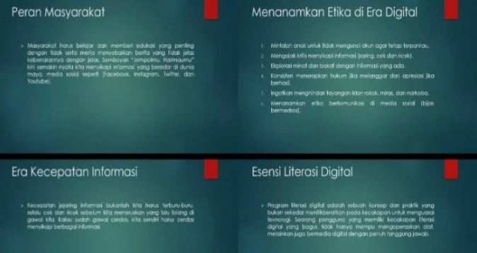 Kemudian mengajak kritis menyikapi suatu informasi dengan saring serta cek dan ricek, eksplorasi minat dan bakat dengan informasi yang dimiliki.