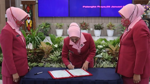 PALANGKA RAYA, JurnalBorneo.co.id – Pengurus Daerah Bhayangkari Kalimantan Tengah dan Pengurus Yayasan Kemala Bhayangkari (YKB) Daerah Kalteng menggelar acara serah terima jabatan (sertijab) Wakil Ketua Bhayangkari Daerah Kalteng, di Aula Arya Dharma, Mapolda Kalteng, Senin (3/1/2022) pagi.