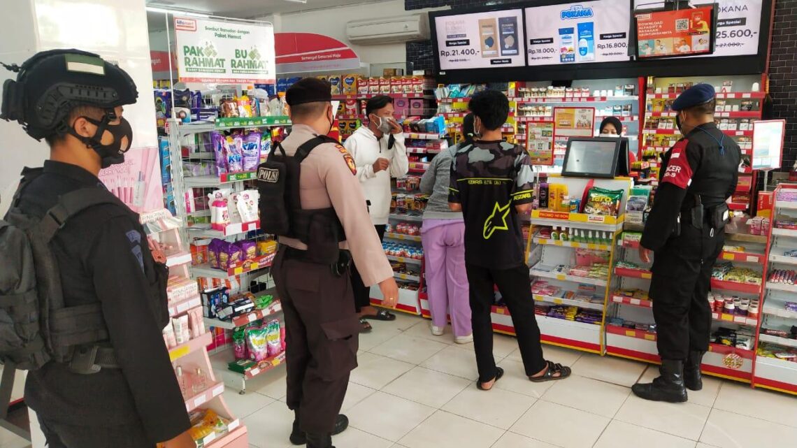 Satbrimob Polda Kalimantan Tengah kembali melaksanakan kegiatan patroli yustisi Covid-19 pendisiplinan protokol kesehatan. Kali ini dilakukan di kawasan Pasar Kahayan dan pertokoan di jalan Tjilik Riwut KM.1 kota Palangka Raya, Sabtu (15/05/2021) siang.