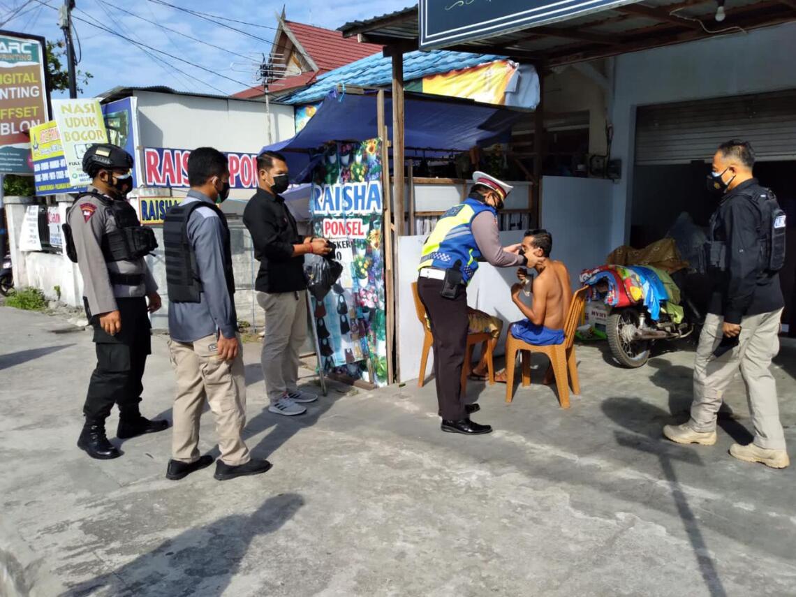 Dansatbrimob Polda Kalteng Kombes Pol Bambang Widjanarko Baiin, S.I.K., M.Si., menyampaikan bahwa kegiatan patroli yustisi ini dilaksanakan guna menekan penyebaran covid-19 sesuai Surat Edaran Walikota Palangkaraya tentang pembatasan kegiatan masyarakat di masa pandei Covid-19.