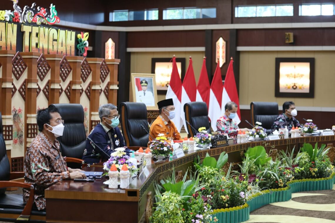 Turut hadir Inspektur Prov. Kalteng H. Sapto Nogroho dan sejumlah Kepala Perangkat Daerah Prov. Kalteng. Hadir secara virtual diantaranya Anggota DPR RI dan DPD RI, Staf Ahli Menteri Bidang Hukum dan Kesatuan Bangsa, Kemendari Eko Prasetyo Purnomo Putro, Deputi Bidang Kemaritiman dan Sumber Daya Alam, Kementerian PPN/Bappenas RI Arifin Rudiyanto, Forkopimda Prov. Kalteng, Bupati/Walikota dan Kepala Perangkat Daerah. (mmckalteng/fer)