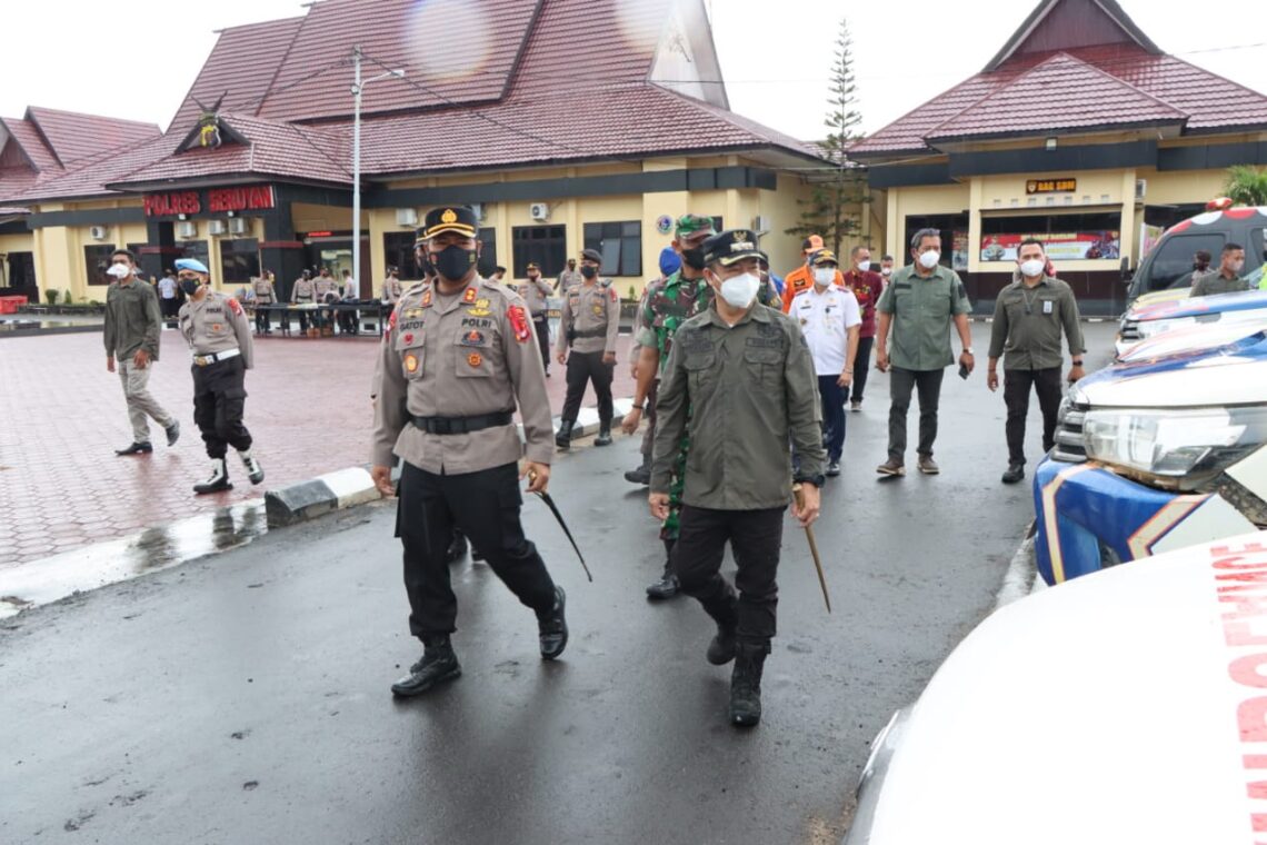 KUALA PEMBUANG, JurnalBorneo.co.id – Kapolres Seruyan AKBP Gatot Istanto, S.I.K melalui Bupati Seruyan Yulhaidir memimpin Apel Gelar Pasukan Keselamatan Telabang 2022, Jum’at Pagi (22/04/2022)