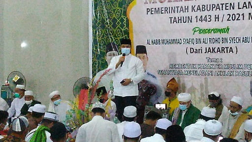 Acara tersebut mengambil tema Membentuk Karakter Muslim Dengan Senantiasa Meneladani Akhlak Rasullah SAW Bersama penceramah Al Habib Muhammad Syafiq Bin Ali Ridho Bin syech Abu Bakar Bin Salaim dari Jakarta. Acara ini digelar dengan menerapkan protokol kesehatan.