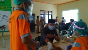 Kemudian di meja ketiga dilakukan pemberian vaksin, petugas memberikan vaksinasi sesuai prinsip penyuntikan aman. Dan di meja ke-4 petugas menuliskan nama sasaran, NIK, nama vaksin dan nantinya diberikan kepada sasaran penerima untuk diserahkan kepada petugas. (by)