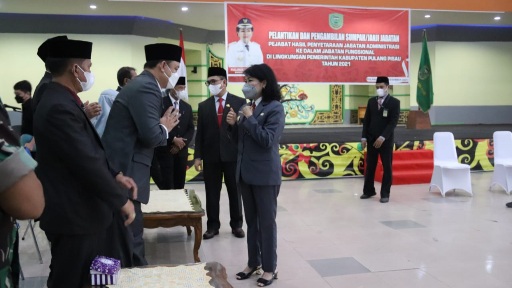Pejabat ini dilantik langsung oleh Bupati Pulang Pisau, Pudjirustaty Narang, di GPU Handep Hapakat, Kota Pulang Pisau, Jumat (31/12/2021) sore dengan menerapkan protokol kesehatan.