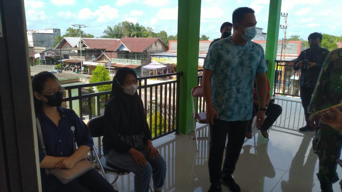 (FOTO UTAMA : Bupati H Hendra Lesmana sedang diwawancarai disela-sela memantau vaksinasi di Puskesmas Bulik, Lamandau)*by.