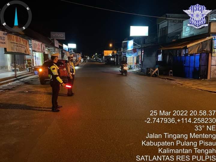 PULANG PISAU, JurnalBorneo.co.id – Untuk menjaga keamanan dan kenyamanan masyarakat dan wilayah tetap aman dan kondusif, Satlantas Polres Pulang Pisau melaksanakan patroli malam hari pada jam – jam rawan. Kegiatan patroli ini rutin dengan menggunakan Ranmor roda empat, Sabtu (26/3/2022)