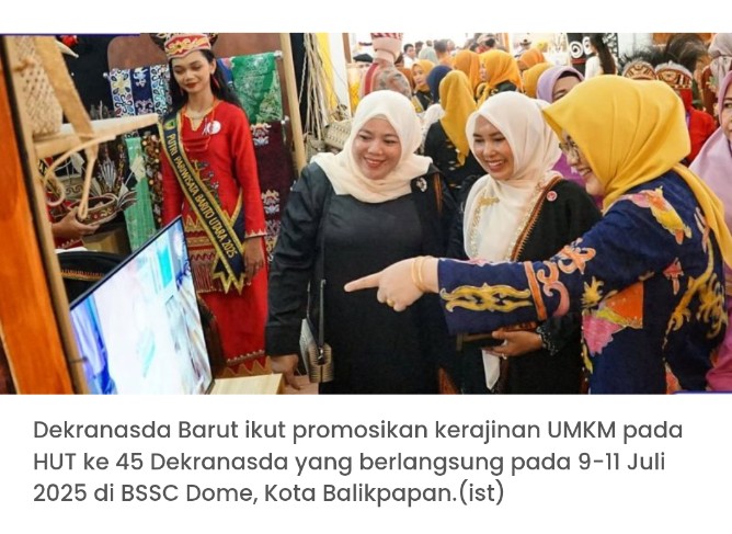 Pemerintah Kabupaten Barito Utara (Barut), melalui Dewan Kerajinan Nasional Daerah (Dekranasda) turut berpartisipasi untuk meriahkan puncak peringatan Hari Ulang Tahun (HUT) ke-45 Dewan Kerajinan Nasional (Dekranas) yang berlangsung pada 9-11 Juli 2025 di Balikpapan Sport Convention Center (BSSC) Dome, Kota Balikpapan, Kalimantan Timur (Kaltim)