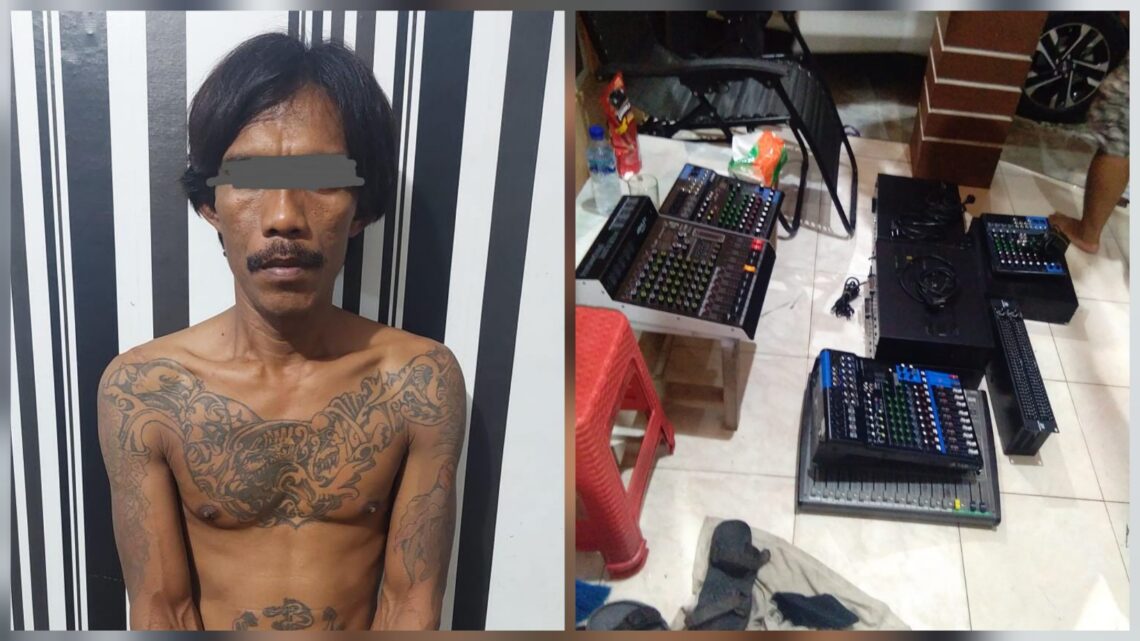 Pelaku kemudian melakukan aksinya dengan mengambil sebuah Mixer Audio yang dimasukkan ke dalam mobilnya dan dibawa kabur.