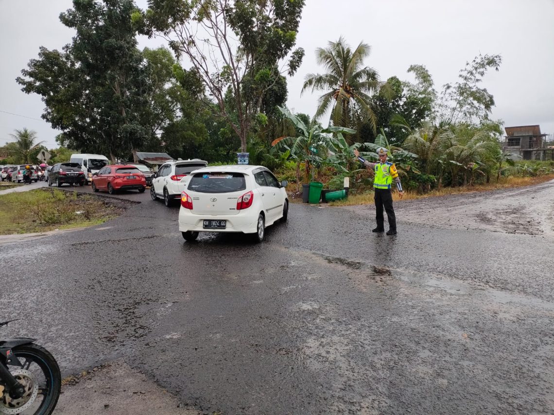 Kapolres Seruyan AKBP Gatot Istanto, S.I.K. melalui Kasat Lantas Polres Seruyan Iptu Prio Amboro, S.T mengatakan, Anggota Lantas Polres Seruyan melaksanakan pengaturan disetiap titik rawan Kemacetan, keramaian, dan persimpangan meski sekarang cuaca sedang hujan.