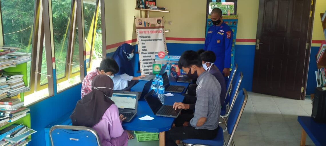 KAPUAS, JurnalBorneo.co.id – Pondok Baca Melek Huruf (PBMH) Kapal Polisi XVIII-2007 Ditpolairud Polda Kalteng fasilitasi siswa-siswi SMPN 1 Satu Atap Kapuas Murung Kabupaten Kapuas Kalimantan Tengah untuk melaksanakan ANBK Edubrand, Rabu (25/8/2021) pagi.