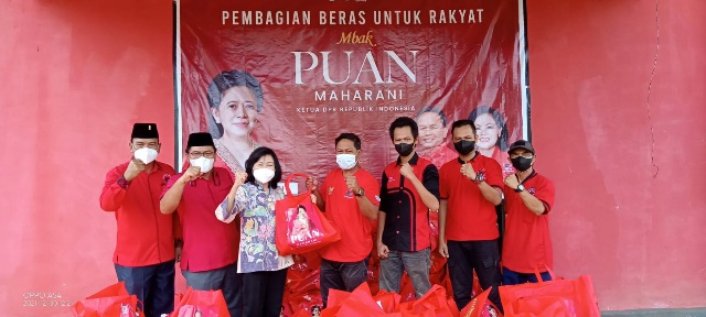 Penyaluran ratusan paket sembako itu, dari Ketua Umum PDI Pejuangan Megawati Soekarno Putri melalui Ketua DPR RI Puan Maharani.
