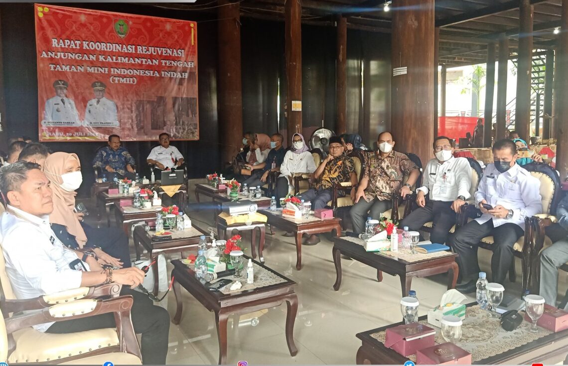 Kemudian, dalam rapat koordinasi bersama Sekda Kalteng tersebut telah disepakati bahwa pelaksanaan rehabilitasi, revitalisasi, dan rejuvenasi Anjungan Kalimantan Tengah TMII, beban pembiayaan ditanggung bersama oleh Pemerintah Provinsi dan Pemerintah Kabupaten/Kota se-Kalteng pada Tahun Anggaran 2022 dan Tahun Anggaran 2023, dengan persentasi pembagian biaya yang telah disepakati.