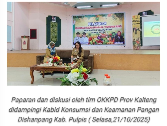 Pelaksanaan program Makan Bergizi Gratis memerlukan jaminan ketersediaan bahan baku pangan segar yang aman, sehat, dan bermutu. Bahan pangan segar yang diperoleh dari petani harus berasal dari sumber yang menerapkan praktik budidaya, penanganan, dan distribusi yang baik agar bebas dari cemaran biologis, kimia, maupun fisik. Dalam rangka meningkatkan pengetahuan pelaku usaha produk pangan segar asal tumbuhan (PSAT), dalam memastikan PSAT aman dikonsumsi, mulai dari tahap budidaya, panen, pascapanen, pengolahan minimal hingga distribusi, Otoritas Kompeten Keamanan Pangan Daerah (OKKPD) Provinsi Kalimantan Tengah, memberikan edukasi pentingnya jaminan mutu pangan segar asal tumbuhan bagi pelaku usaha tanaman pangan hortikultura se-Kabupaten Pulang Pisau sebanyak 50 (lima puluh) orang peserta di Aula Dinas Kebudayaan, Pemuda Olah Raga dan Pariwisata Kabupaten Pulang Pisau (Selasa, 21/10/2025).