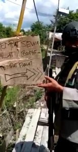 Di sobekan kardus terlihat tulisan tempat sewa bong (alat hisap sabu-red). Akses masuknya pun cukup sulit hanya bisa dilewati melalui jalan titian kayu di atas rawa. Sebaliknya terdapat banyak akses untuk kabur dari sergapan polisi baik melalui hutan ataupun sungai. Saat itu terlihat satu speedboat yang siap digunakan untuk kabur. Lokasi sarang narkoba ini sengaja masuk ke hutan dan jaraknya cukup jauh sekitar 4 km dari pemukiman warga. (fer)