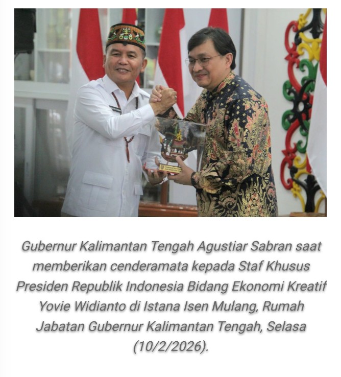 “Kunjungan Staf Khusus Presiden Bidang Ekonomi Kreatif Yovie Widianto, menjadi kehormatan sekaligus momentum strategis untuk memperkuat kolaborasi pengembangan ekonomi kreatif di Kalimantan Tengah,” ujar gubernur.
