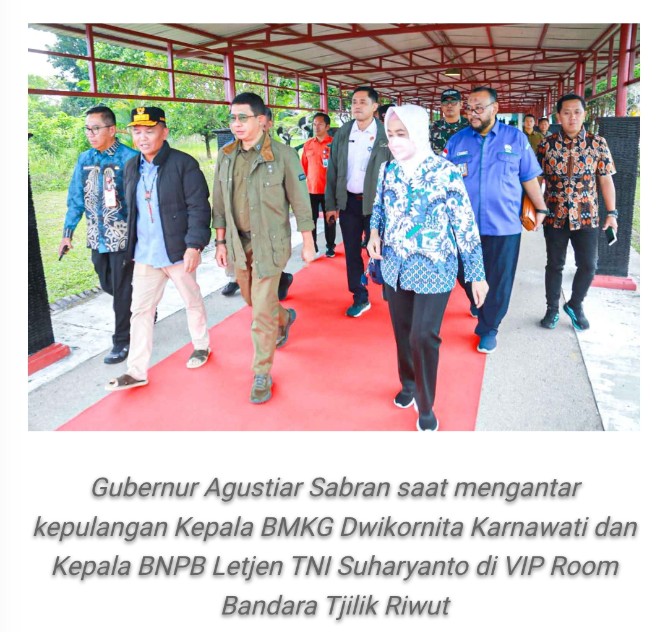 Pengantaran ini merupakan bentuk penghormatan sekaligus apresiasi dari Pemerintah Provinsi atas kontribusi dan perhatian kedua pimpinan lembaga nasional tersebut selama berada di Bumi Tambun Bungai, khususnya dalam memperkuat kesiapsiagaan menghadapi kebakaran hutan dan lahan (karhutla).