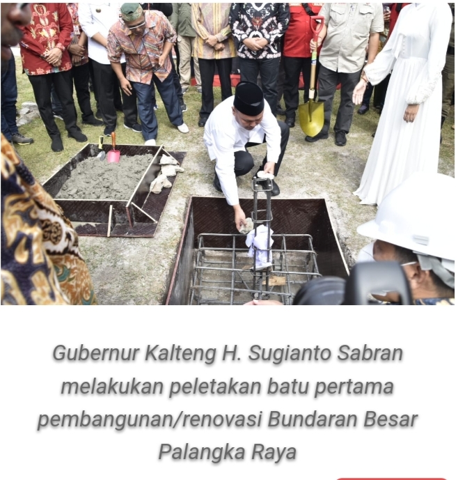 PALANGKA RAYA, Jurnalborneo.co.id — Gubernur Kalteng H. Sugianto Sabran melakukan peletakan batu pertama pembangunan/renovasi Bundaran Besar Palangka Raya, Sabtu (17/9/2022).