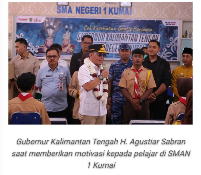 Gubernur Kalimantan Tengah H. Agustiar Sabran, melakukan kunjungan kerja ke Sekolah Menengah Atas Negeri (SMAN) 1 Kumai Kabupaten Kotawaringin Barat, Kamis (2/10/2025).