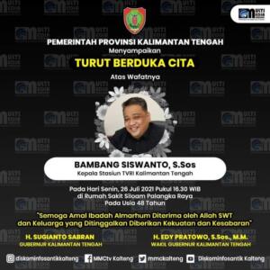 PALANGKA RAYA, JurnalBorneo.co.id – Karyawan dan karyawati TVRI Kalteng berbelasungkawa atas wafatnya Kepala Stasiun TVRI Kalteng Bambang Siswanto pada Senin, 26 Juli 2021.