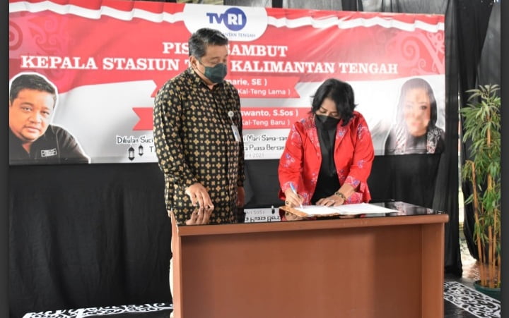 Sebagai informasi, Bambang Siswanto menjabat Kepala Stasiun (Kepsta) TVRI Kalteng menggantikan Rosmarie. Acara pisah sambut digelar di Kantor TVRI Kalteng, Palangka Raya, Rabu (14/4/2021) sore. (fer)