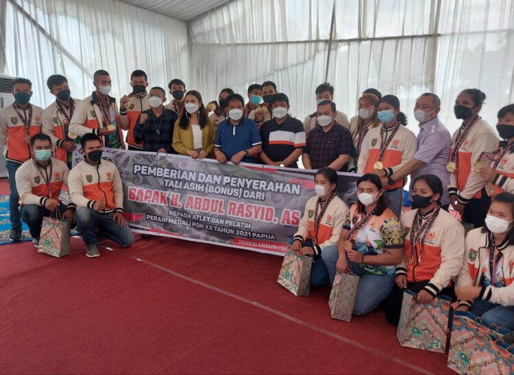 PANGKALAN BUN, JurnalBorneo.co.id – Pengusaha daerah, Owner Citra Borneo Indah (CBI) Group H. Abdul Rasyid AS, memberikan bonus kepada para atlit Kalimantan Tengah, yang meraih medali di PON XX 2021 Papua.
