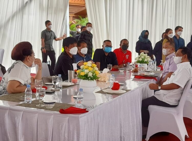 H Abdul Rasyid AS bersama H Ruslan AS, Ketua KONI Kalteng, H Eddy Raya, Harry Toeweh, Tuty Dau, berbincang di Sulung Ranch, Minggu (7/11/2021).