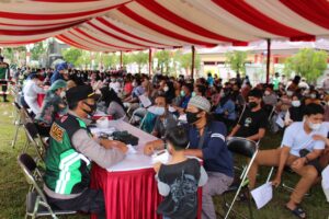 PALANGKA RAYA, JurnalBorneo.co.id – Melihat kesadaran masyarakat terhadap bahaya Covid-19 khususnya di Provinsi Kalimantan Tengah semakin meningkat, Polda Kalteng menyelenggarakan Gerai Vaksin Presisi Gratis dalam rangka memperingati Hari Bhayangkara Ke-75 Tanggal 1 Juli 2021 bertempat di Lapangan Barigas Mapolda Kalteng, Kamis (1/7/2021) pagi.