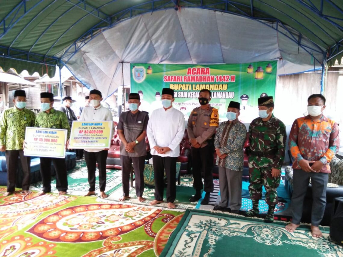 Untuk tahun ini, Bupati Lamandau H. Hendra Lesmana didampingi istri tercinta yang juga Ketua TP PKK Kab. Lamandau Hj. Rusdiyanti Hendra Lesmana mengawali rangkaian Safari Ramadhan ke Masjid Nurut Taqwa, Desa Suja, Kecamatan Lamandau, Kabupaten Lamandau pada hari Kamis (15/04/2021).