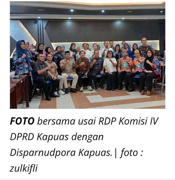 Komisi IV DPRD Kabupaten Kapuas menggelar Rapat Dengar Pendapat (RDP) dengan Dinas Pariwisata Kebudayaan Pemuda dan Olahraga (Disparbudpora) Kabupaten Kapuas pada Rabu 15 Januari 2025, di Ruang Rapat Gabungan Komisi DPRD Kapuas.