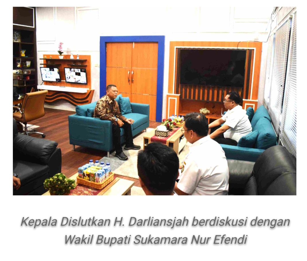 Kepala Dinas Kelautan dan Perikanan Prov. Kalteng H. Darliansjah menerima kunjungan Wakil Bupati Sukamara Nur Efendi di ruang kerjanya, Rabu (16/4/2025).