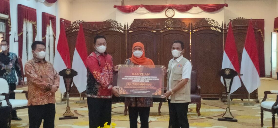 “Untuk itu kami mohon kesediaan Ibu Gubernur Jawa Timur atas nama Pemerintah Provinsi Jawa Timur untuk dapat meneruskan bantuan ini kepada Pemerintah Kabupaten Lumajang sebagaimana telah tercantum dalam Berita Acara Serah Terima Bantuan Keuangan yang telah ditandatangani, sehingga bantuan ini dapat segera dipergunakan dalam penanganan bencana erupsi di Kabupaten Lumajang,” imbuhnya.