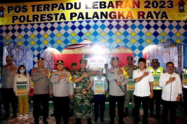 Palangka Raya, JurnalBorneo.co.id – Kapolda Kalteng Irjen Pol. Drs. Nanang Avianto, M.Si. dan Danrem 102/PJG Brigjen TNI Bayu Permana bersama Forkopimda mengecek dua pos pengamanan yang berada di Kota Palangka Raya yakni Pospam di Pasar Besar Jalan A. Yani dan Pospam di Bundaran Besar, Jumat (21/04/2023) malam.