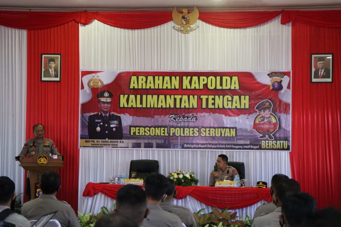 KUALA PEMBUANG, JurnalBorneo.co.id – Kapolda Kalimantan Tengah Irjen Pol Drs. Nanang Avianto, M.Si memberikan arahan kepada personil Polres Seruyan, Senin (22/11/2021).