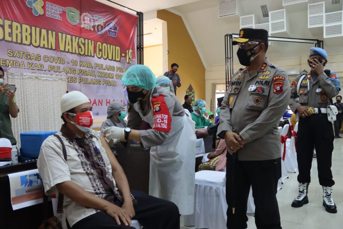 PULANG PISAU, JurnalBorneo.co.id – Percepatan penanggulangan pandemi Covid-19 melalui program serbuan vaksinasi massal Covid-19 terus digencarkan oleh Pemerintah Provinsi Kalteng bersama Polda Kalteng dan Korem 102 Panju Panjung.