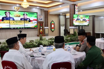 Palangka Raya, JurnalBorneo.co.id – Kapolda Kalimantan Tengah Irjen Pol Drs. Nanang Avianto, M.Si. menghadiri acara peringatan Maulid Nabi Muhammad SAW 1444 H / 2022 yang digelar Mabes Polri, secara virtual bertempat di Aula Arya Dharma, Mapolda setempat, Selasa (18/10/2022) pagi.