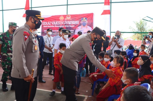 Vaksinasi Covid-19 yang dilaksanakan serentak di seluruh Indonesia tersebut, ditinjau langsung oleh Kapolri Jenderal Polisi Drs. Listyo Sigit Prabowo, M. Si melalui sambungan video conference.