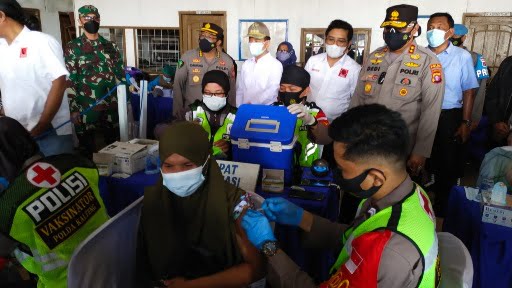 Kegiatan vaksinasi dilaksanakan kerjasama Projo, Polri, Kemenkes dan Gabungan pengusaha Kelapa sawit Indonesia (GAPKI).