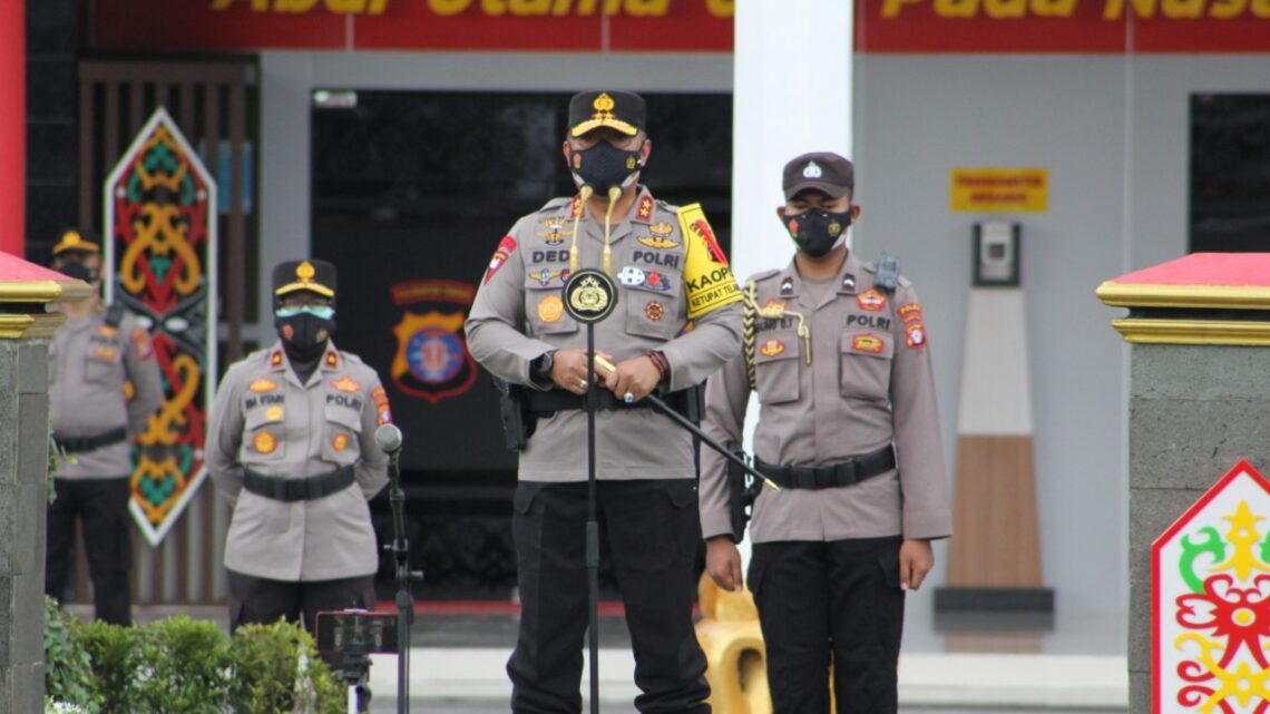 PALANGKA RAYA, JurnalBorneo.co.id – Kapolda Kalteng Irjen Pol Dr. Dedi Prasetyo, M.Hum., M.Si., M.M., didampingi Wakapolda Brigjen Pol Ida Oetari Poernamasasi, S.A.P., M.A gelar apel konsolidasi usai melaksanakan pengamanan perayaan Hari Raya Idul Fitri 1442 H di Lapangan Barigas Mapolda Kalteng, jalan Tjilik Riwut KM.1 Kota Palangka Raya, Senin (17/05/2021) pagi.
