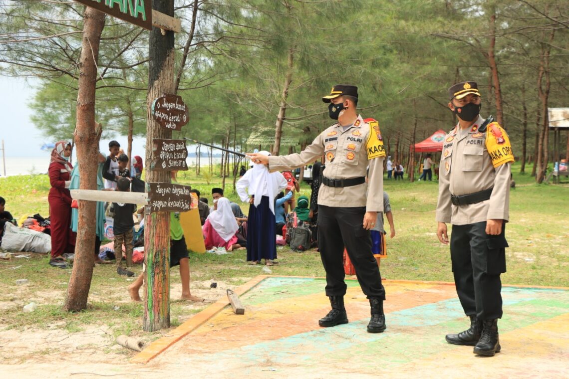 Dengan didampingi para pejabat utama Polres Seruyan, Kapolres Seruyan AKBP Bayu Wicaksono, S.H., S.I.K., M.Si melaksanakan sosialisasi kepada masyarakat yang sedang melaksanakan liburan akhir pekan di Pantai Seribu Cemara Desa Sungai Bakau
