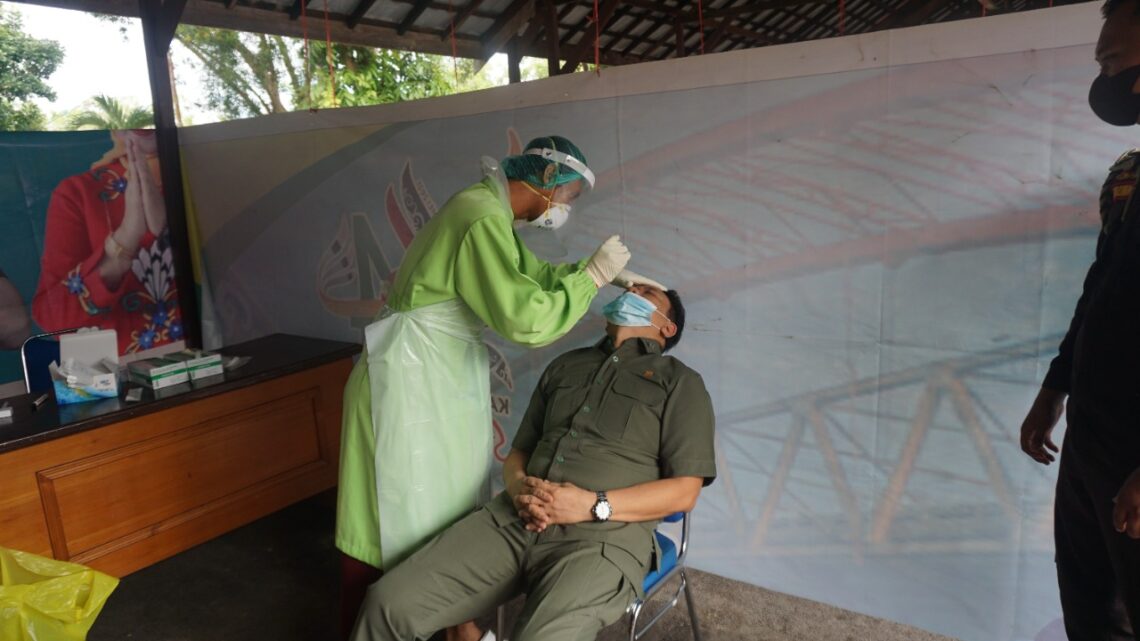 (FOTO UTAMA : Kajati Kalteng Iman Wijaya, SH. M.Hum., sedang diswab rapid tes Antigen)