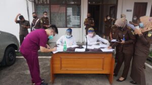 PALANGKA RAYA, JurnalBorneo.co.id – Dalam rangka meminimalisir dan mencegah penyebaran Covid-19 di lingkungan kantor, Kejaksaan Tinggi Kalimantan Tengah (Kejati Kalteng) gelar Swab Rapid Tes Antigen, Senin (12/7/2021) pukul 08.00 WIB.