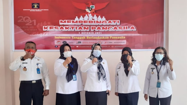 Kegiatan upacara hari kesaktian Pancasila diikuti oleh Kepala Lapupala dan Jajarannya di Aula Lapupala pada pukul 08:00 WIB. Sementara Doa Kumham untuk Negeri dan Pembukaan Peringatan HDKD Tahun 2021 diikuti oleh semua pegawai Lapupala di ruang besuk pada pukul 09:00 WIB. Jumat (01/10/2021)