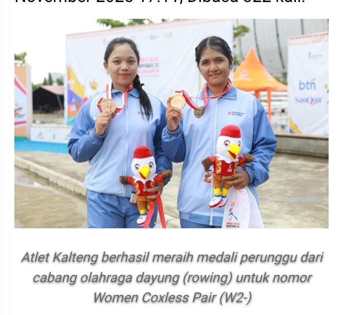 Pada hari kedua pelaksanaan, Selasa (04/11/2025), Kalteng berhasil meraih medali perunggu dari cabang olahraga dayung (rowing) untuk nomor Women Coxless Pair (W2-), melalui pasangan atlet Ekklesia Esterin dan Zefanya Febrianti.